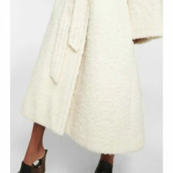 Made from a blend of wool cultivated from Alpaca and cotton, this coat from Alaïa has wide lapels and a voluminous silhouette that can be cinched at the self-tie waist.