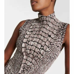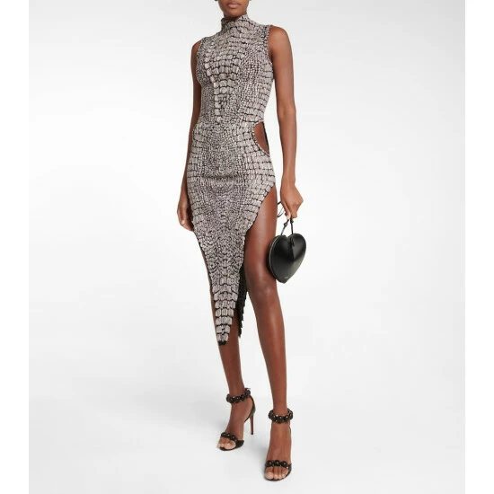This animal print midi dress from Alaïa has a figure-skimming cut and a halterneck silhouette. It’s finished with slits at the sides and cutout details at the waist.