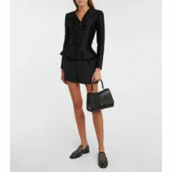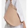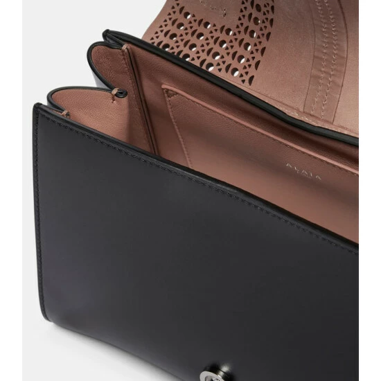 The Bellechasse 25 tote nods to Alaïa’s famed corset belts. Crafted from smooth black leather with the laser-cut “Vienne” pattern, it secures with double buckles at the front. Carry it via the top handle or attach the shoulder strap for hands-free styling.