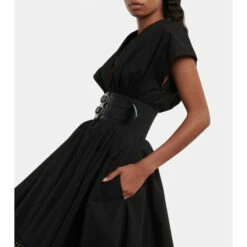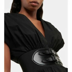For a timeless and elegant evening ensemble, look no further than this minidress from Alaïa. Made from Japanese cotton poplin, it has kimono-inspired sleeves, an elasticated belt with leather straps, and an artful bubble-shaped skirt.