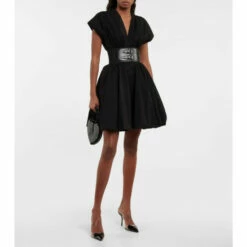 For a timeless and elegant evening ensemble, look no further than this minidress from Alaïa. Made from Japanese cotton poplin, it has kimono-inspired sleeves, an elasticated belt with leather straps, and an artful bubble-shaped skirt.