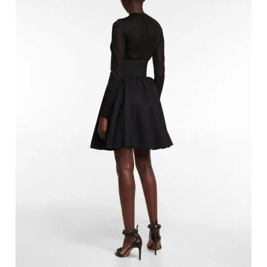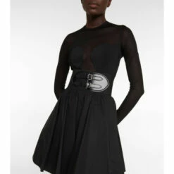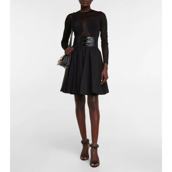 Cut from crisp black cotton, this Alaïa skirt has a knee-skimming, gathered silhouette and is finished with a wide belt that hugs the waist and secures through leather buckles.