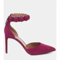 Step up your style game with the purple Bombe sandals from Alaïa. Standing on 90mm stiletto heels, they’ve been made in Italy from plush suede that’s embellished with tonal pompoms and pyramidal studs. The lightly padded insole makes the comfortable enough for long days at the office and long nights out.