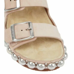 Earn style points from the ground up with Alaïa’s Bombe slides. They’re made from smooth beige suede with bulbous embellishments and pyramidal studs that perfectly match logo-engraved buckles.