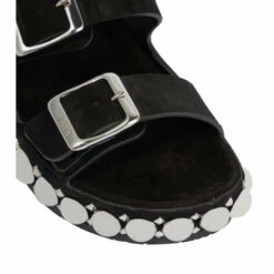 Earn style points from the ground up with Alaïa’s Bombe slides. They’re made from smooth suede, with bulbous embellishments and pyramidal studs that perfectly match logo-engraved buckles.