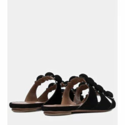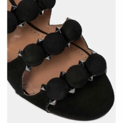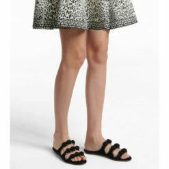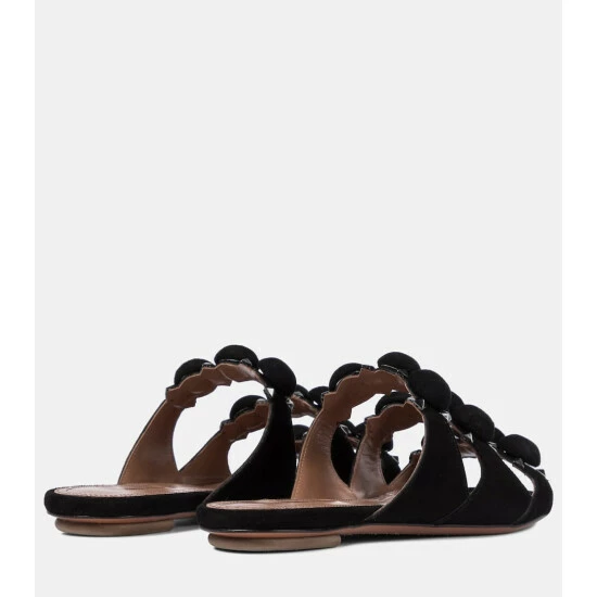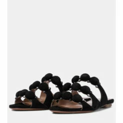 The Bombe sandals from Alaïa are unabashedly feminine for all occasions. A worthy successor to vertiginous pumps, this slip-on pair is made from soft black suede with round toes and a combination of pompoms and platinum-toned embellishments.