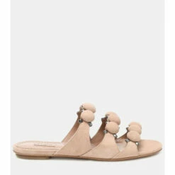 The Bombe slides from Alaïa are unabashedly feminine for all occasions. A worthy successor to vertiginous pumps, they’re made in blush-pink suede with round toes and a combination of spherical and platinum-toned embellishments.