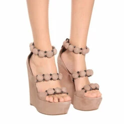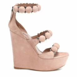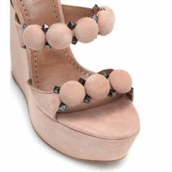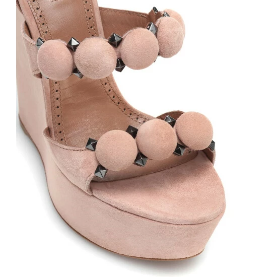 Alaïa’s dusty-pink Bombe sandals are defined by the combination of smooth and sharp lines. Crafted in Italy from supple suede, they’re fitted with pompom-embellished straps punctuated with gunmetal-gray pyramid spikes, then set on plateau wedges. Allow yours to elegantly contrast silky slip dresses.