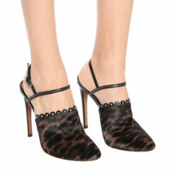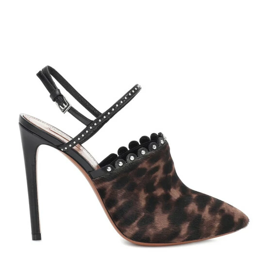 Embrace your animal instincts with these leopard-print slingback pumps from Alaïa. Crafted in Italy from tactile calf hair, this pair is illuminated by shimmering crystal embellishments along the laser-cut trim and ankle straps. Style yours with suits and dresses alike.