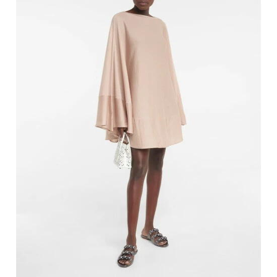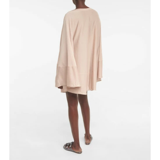 A luxurious design for winter layering, this poncho from Alaïa combines the softness of cashmere with the luster of silk. The light pink design has a relaxed silhouette with a boat neck and pleated, circular shape. We think it’s a considered piece to wear from WFH to weekend errands.