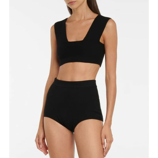 This bra and briefs set from Alaïa is the ultimate definition of luxury – both pieces are made from the softest boiled cashmere in black. Pulling double-duty, the bustier-style top can be worn during the day with smarter separates.