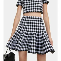 This fit-and-flare miniskirt from Alaïa reflects the house’s affinity for sculptural shapes. The classic checked design sits high on the waist and has an elegant fluted hemline.