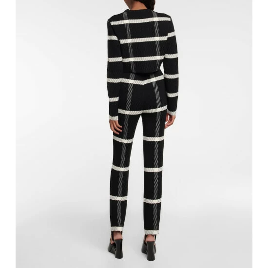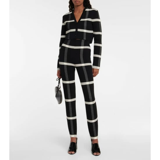 These leggings from Alaïa are knitted from a wool-blend in a checked pattern. They have a fitted silhouette with an elasticated waistband and stirrup hems.