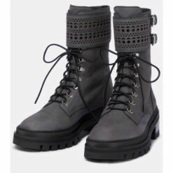 With a smooth suede finish, Alaïa’s cendre-grey ankle boots are detailed with the label’s “Vienne” motif. Featuring thick rubber soles and adjustable buckles at the ankle, these boots have a distinct military style, ideal to see you through the season.