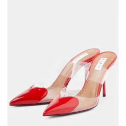 Aptly named, Alaïa’s Le Cœur pumps feature patent leather heart detailing at the toes. Set on stiletto heels, they have clear PU straps.