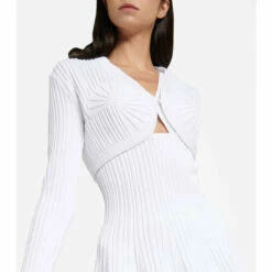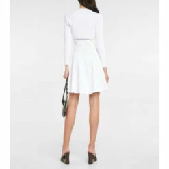 This cropped cardigan shows Alaïa’s impeccable craftsmanship and attention to detail. The style is defined by spiral cups in a 3D, compact knit.