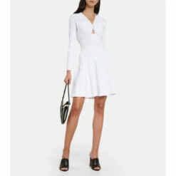 This cropped cardigan shows Alaïa’s impeccable craftsmanship and attention to detail. The style is defined by spiral cups in a 3D, compact knit.