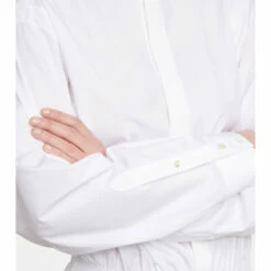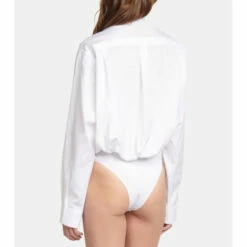 This bodysuit from Alaïa takes the form of a crsip shirt. Made from cotton, it has a round neckline, concealed front button placket and snap fastenings at the base.