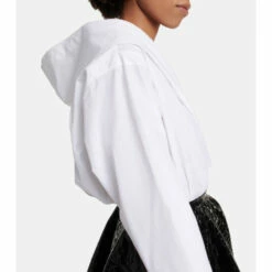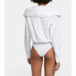 Build your day-to-night edit around this versatile bodysuit from Alaïa. The design features a crisp cotton bodice with a plunging neckline and an oversized wide hooded collar, complete with snap button closure.