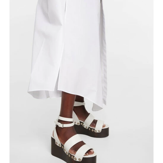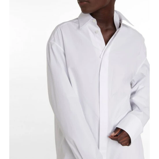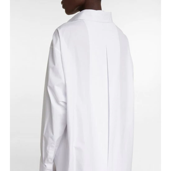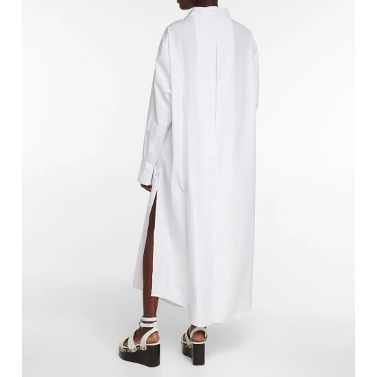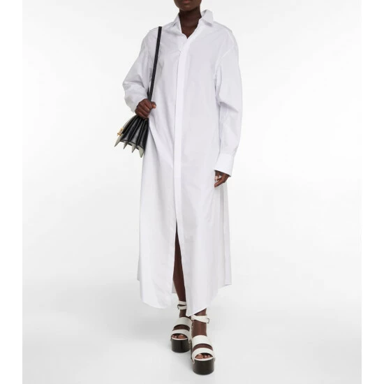 Alaïa reimagines the classic shirt dress with cutout-detailing at the collar for subtle, yet on-brand flair. It’s cut from white, Japanese cotton poplin to a wide, maxi-length silhouette.