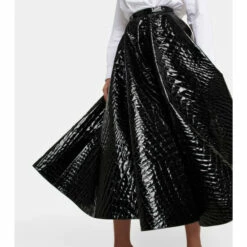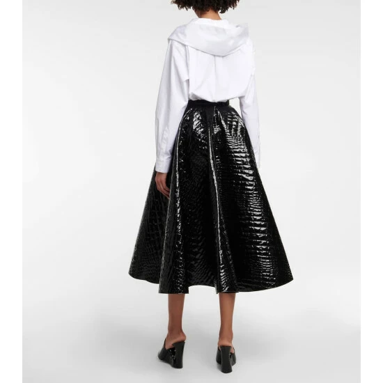 Build your evening wear edit around this high-shine midi skirt from Alaïa. Made from croc-effect technical vinyl, the design features a high waist with a subtle volume created by gentle pleats.