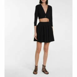 Let Alaïa refine your weekend wardrobe with this cropped cardigan. Made in Italy from black stretch-knit, it has a plunging V-neckline, ribbed edges and three-quarter sleeves. With its shortened length, it makes the perfect companion to the label’s fit-and-flare dresses.