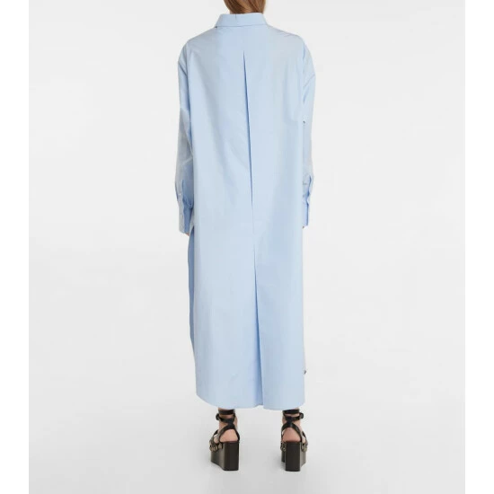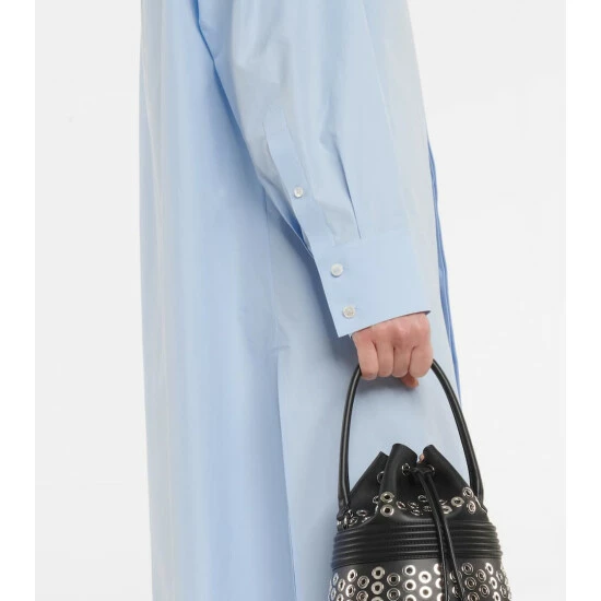 Alaïa reimagines the classic shirt dress with cutout-detailing at the collar for subtle, yet on-brand flair. It’s cut from crisp, Japanese cotton poplin to a wide, maxi-length silhouette.