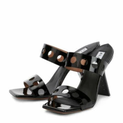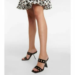 Sculptural silhouettes from Alaïa continue with these leather mules. They have hole punch-effect cutouts from straps to slanted plinth heels. We love the pointed footbeds and sharp square toes.