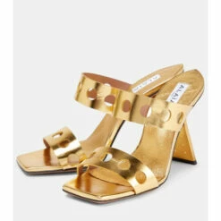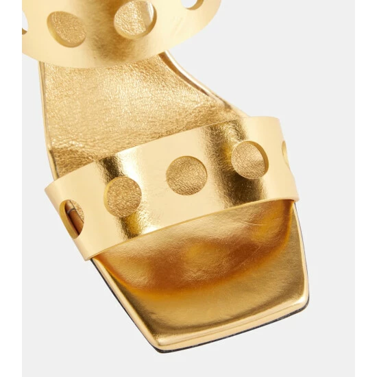 Sculptural silhouettes from Alaïa continue with these leather mules. They have hole punch-effect cutouts from straps to slanted plinth heels.