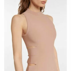 An otherwise minimalist design, this midi dress from Alaïa is defined by distinctive cutouts at the sides. Made from a jersey fabric, it has a crewneck and a zipped back.
