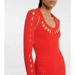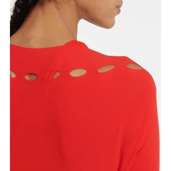 Alaïa completes our poolside looks in the best way possible with this red bolero. It’s made from stretch-fused swim fabric and accented with signature Vienne cutouts on the sleeves and at the back.