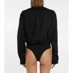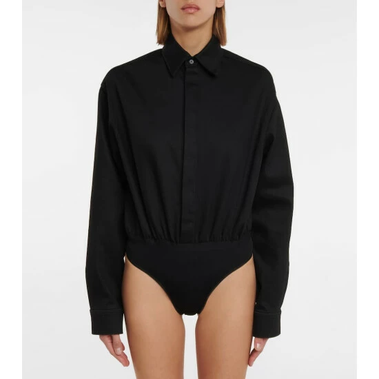Alaïa elevates laid-back workwear with this shirt bodysuit. It’s made from black cotton denim with supportive jersey briefs.