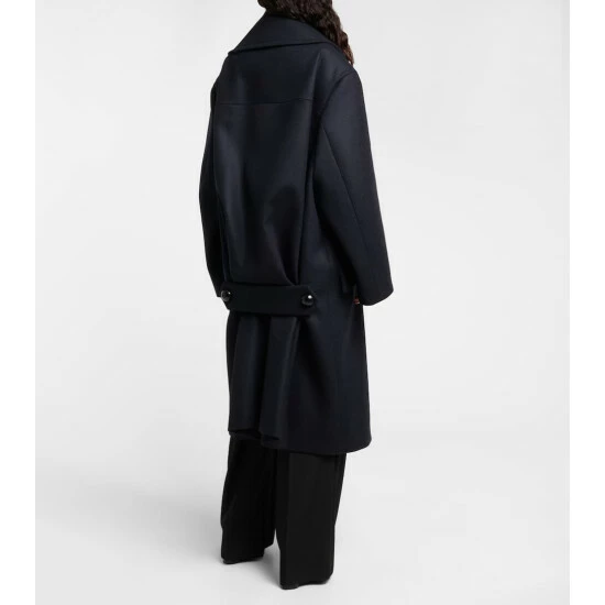 Alaïa’s take on the timeless peacoat is defined by its exaggerated collar and double-breasted style. The long design is made from a weighty wool and has a martingale in the low rear and dual welt pockets. Pop the collar for an extra dose of drama.