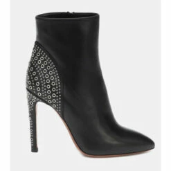 The circular studs framing the heel of these black ankle boots are an Alaïa signature. Made in Italy from leather, the pointed-toe style has a zipper on the inner side that makes slipping them on effortless. Pair yours with a laser-cut dress from the label for a directional edit.