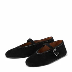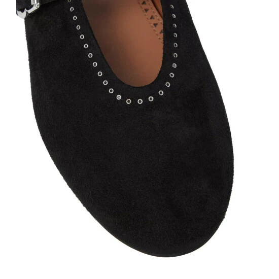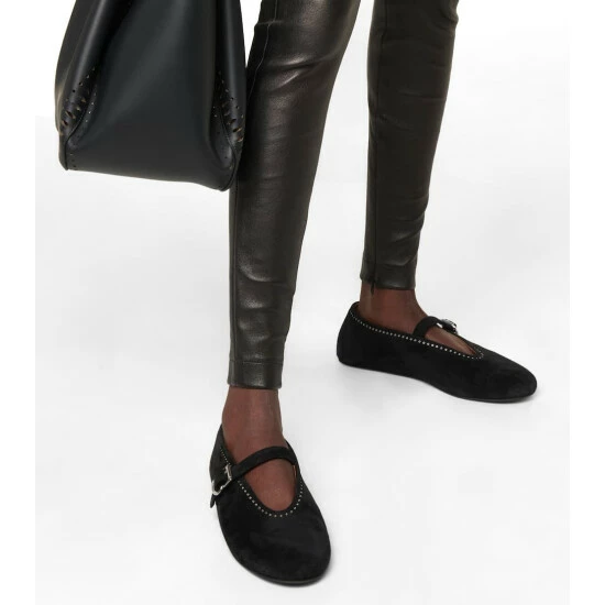 These ballet flats from Alaïa are embellished with heirloom studding for a brand-typical spin. The black design is made in Italy from suede with buckled straps and barely-there rubber soles.