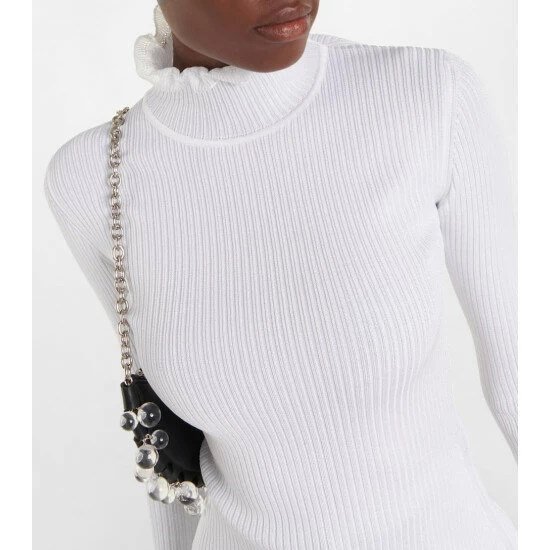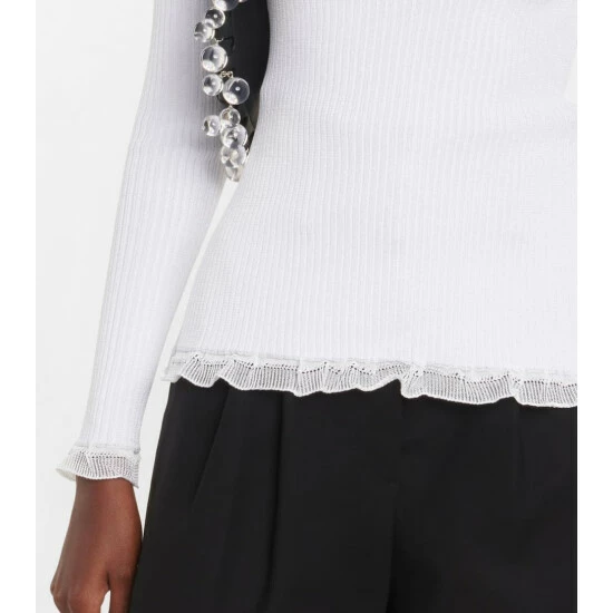 Made from a ribbed-knit, this sweater from Alaïa has a turtleneck and frill trims.