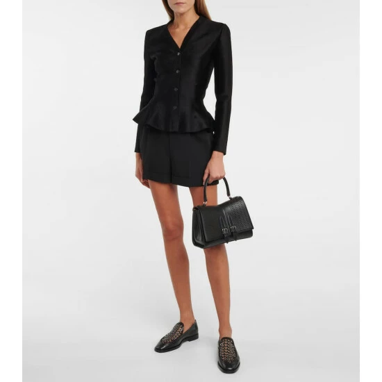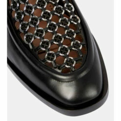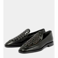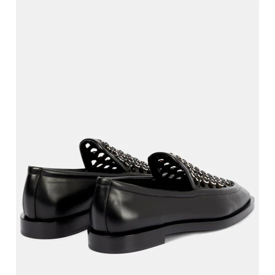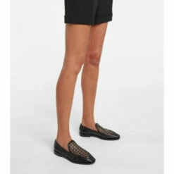 Ever the expert of modern refinement, Alaïa designed these loafers with a grommet-patterned vamp for subtle glimpses of skin. The otherwise classic silhouette is cut from smooth black leather with low stacked heels.