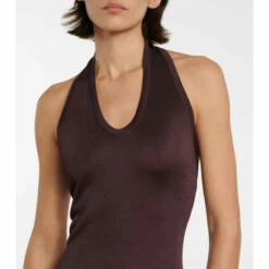 This slinky midi dress from Alaïa will be an after-dark staple for seasons to come. The minimalist design is made from lustrous knit fabric with a snap-buttoned halterneck and flattering figure-skimming drape.