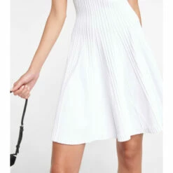 This minidress from Alaïa is perfect for your next daytime event. It has a tightly-knit construction with and A-line silhouette and it’s defined by a spiral detail at the bust.