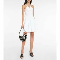 This minidress from Alaïa is perfect for your next daytime event. It has a tightly-knit construction with and A-line silhouette and it’s defined by a spiral detail at the bust.