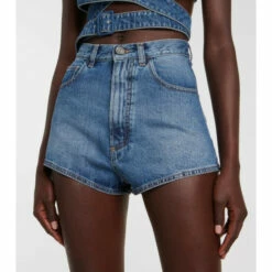 Known as the “King of Cling,” Azzedine Alaïa introduced the fashion world to bodycon designs that accentuated the bust and hips. Made from washed cotton denim, these snug Alaïa micro shorts have a high waist and style well with the matching crop top.