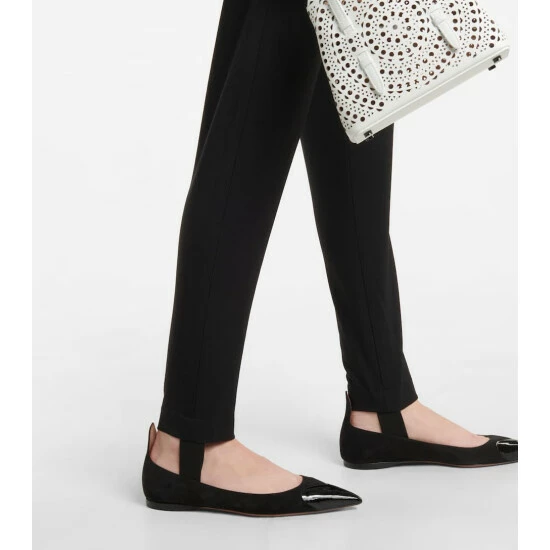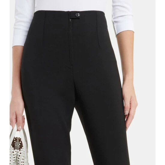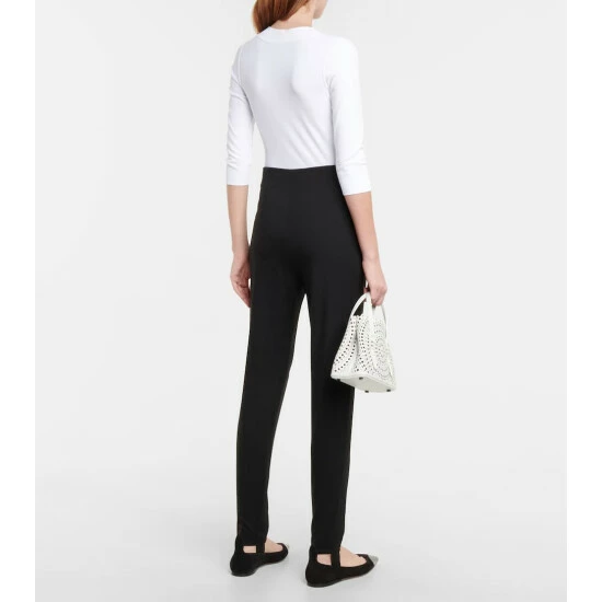 These slim pants from Alaïa blend athleisure with formalwear. Made from stretchy wool, they have a high-rise waistband with neatly sewn darts, and end in anchoring stirrups.
