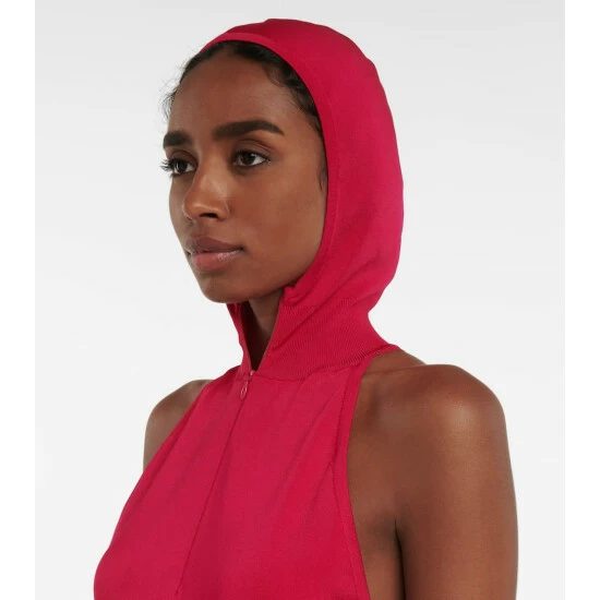 A modern interpretation of athleisure, this bodysuit from Alaïa is an essential for every woman on-the-go. Rib-knitted to a figure-sculpting fit, this racer-cut design features a hood and zip for elevated off-duty wear.