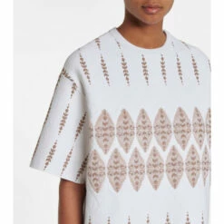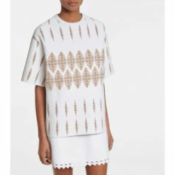 This white top from Alaïa reflects the house founder’s Tunisian roots. Woven with a metallic-golden geometric motif, it’s made from weighty jacquard to a structural, oversized silhouette with dropped shoulders. Balance its volume with the house’s leggings.