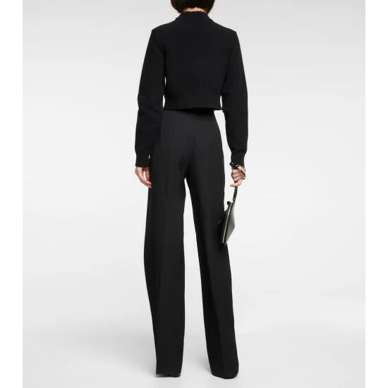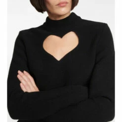 Playing with Alaïa’s affinity for heart motifs, this sweater is an off-kilter update to a timeless piece. Made from virgin wool, this style has a high mock neck, cropped length, and ribbed-knit trims.