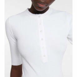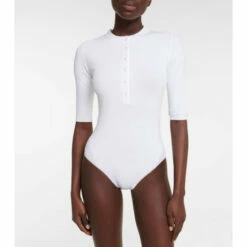 This knit bodysuit from Alaïa shows that the brand understands that nothing beats the organic elegance of the natural body. This fitted, elastic silhouette has a rounded crewneck and three-quarter length sleeves.