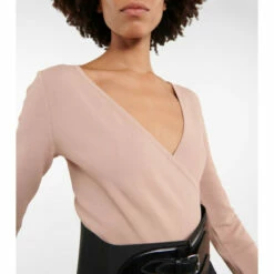 This bodysuit from Alaïa is made from the brand’s signature stretchy knit fabric. Cut into a wrap-effect style, the V-neck design is a hardworking first-layer essential.