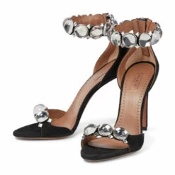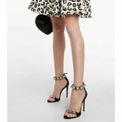 Alaïa’s signature La Bombe sandals are reimagined here with hemispherical crystal embellishments. They’re made from smooth suede and set atop vertiginous 110mm stiletto heels.