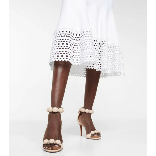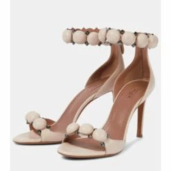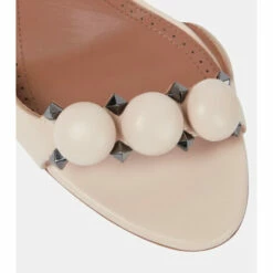 Alaïa’s signature La Bombe sandals balance an elegant form and tough-luxe metal finishes. They are crafted in Italy from leather with hemispherical and pyramid-shaped studs, and have 90mm stiletto heels.