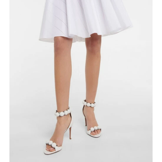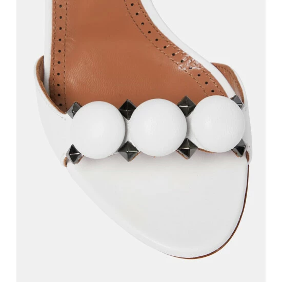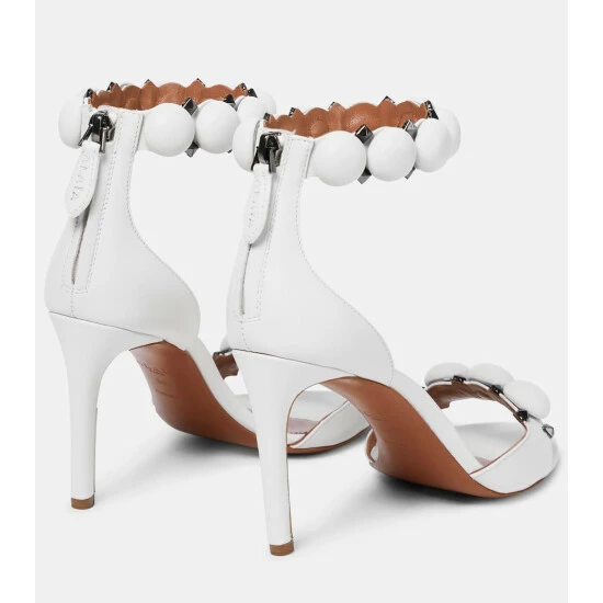 Alaïa’s signature La Bombe sandals balance an elegant form and tough-luxe metal finishes. They are crafted in Italy from leather with hemispherical and pyramid-shaped studs, and have 90mm stiletto heels.